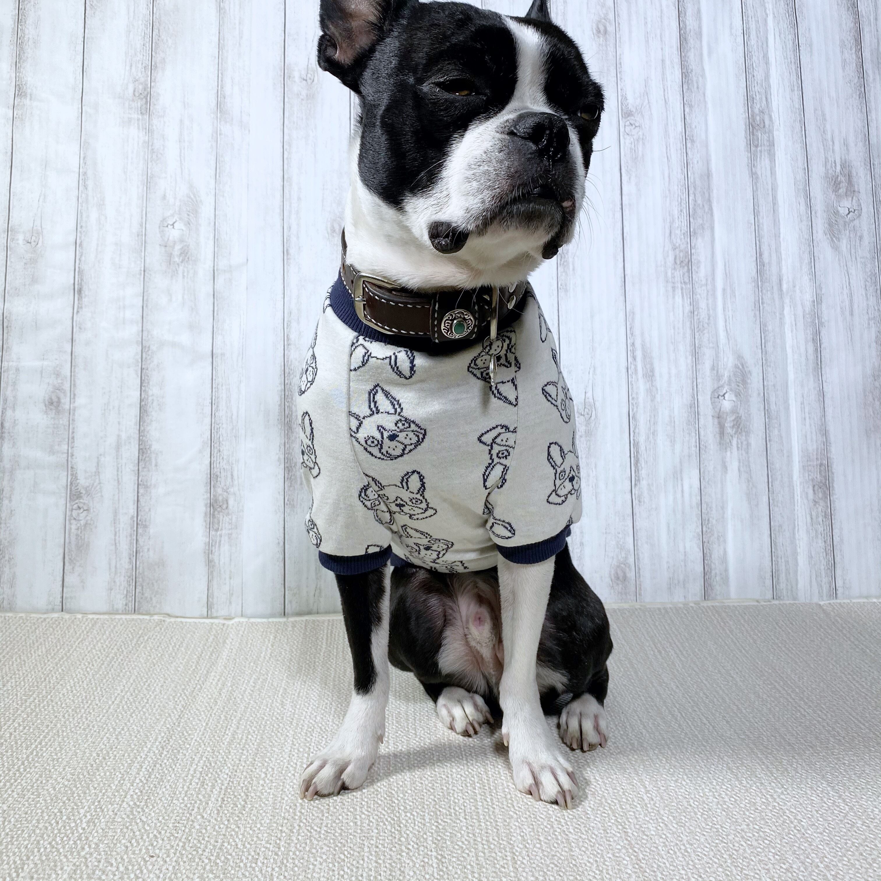 ボステリに見えなくもない柄Tシャツ<ivory/navy/reversible>/ボストンテリア/犬服