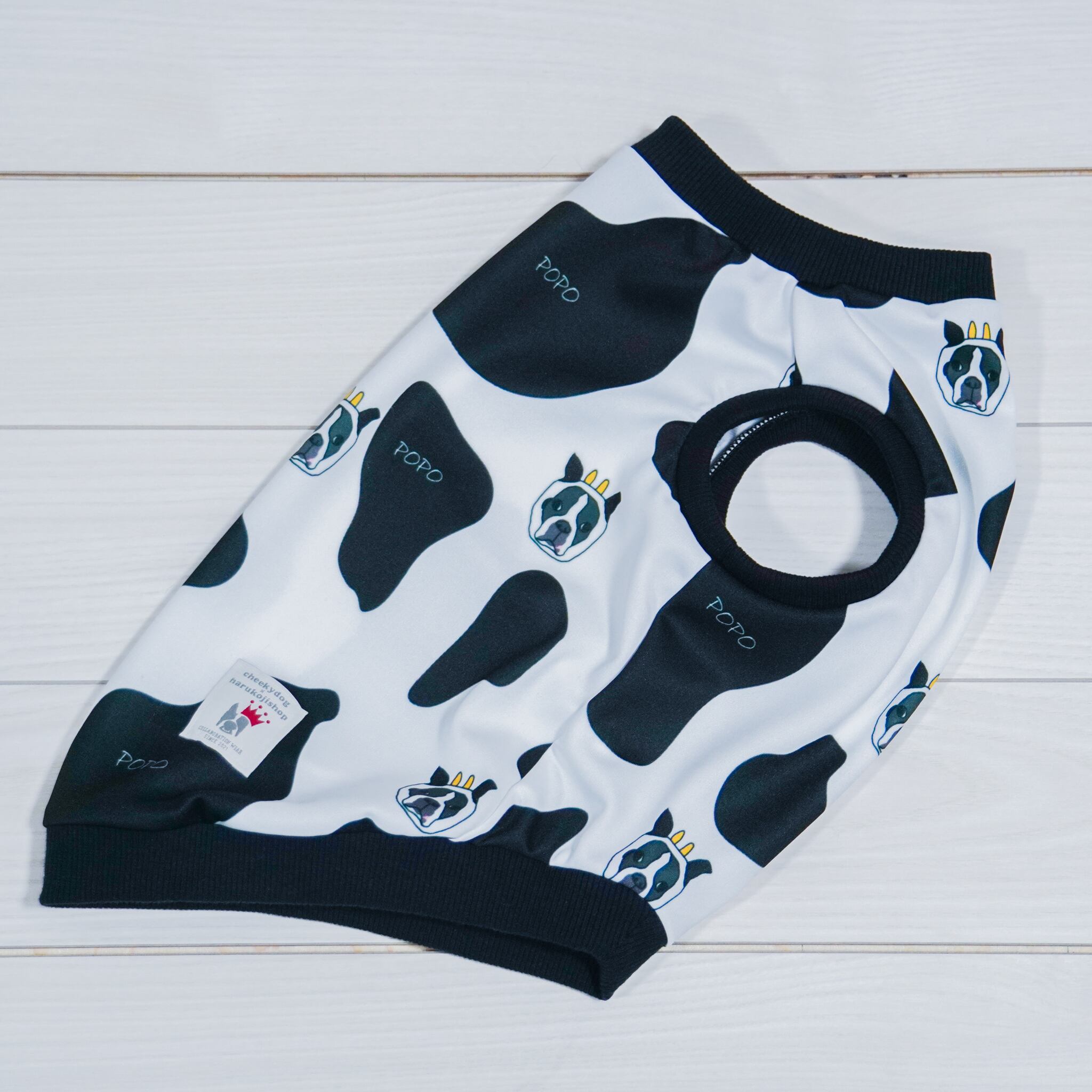 愛犬の似顔絵柄タンク<牛ver>/ボストンテリア/犬服